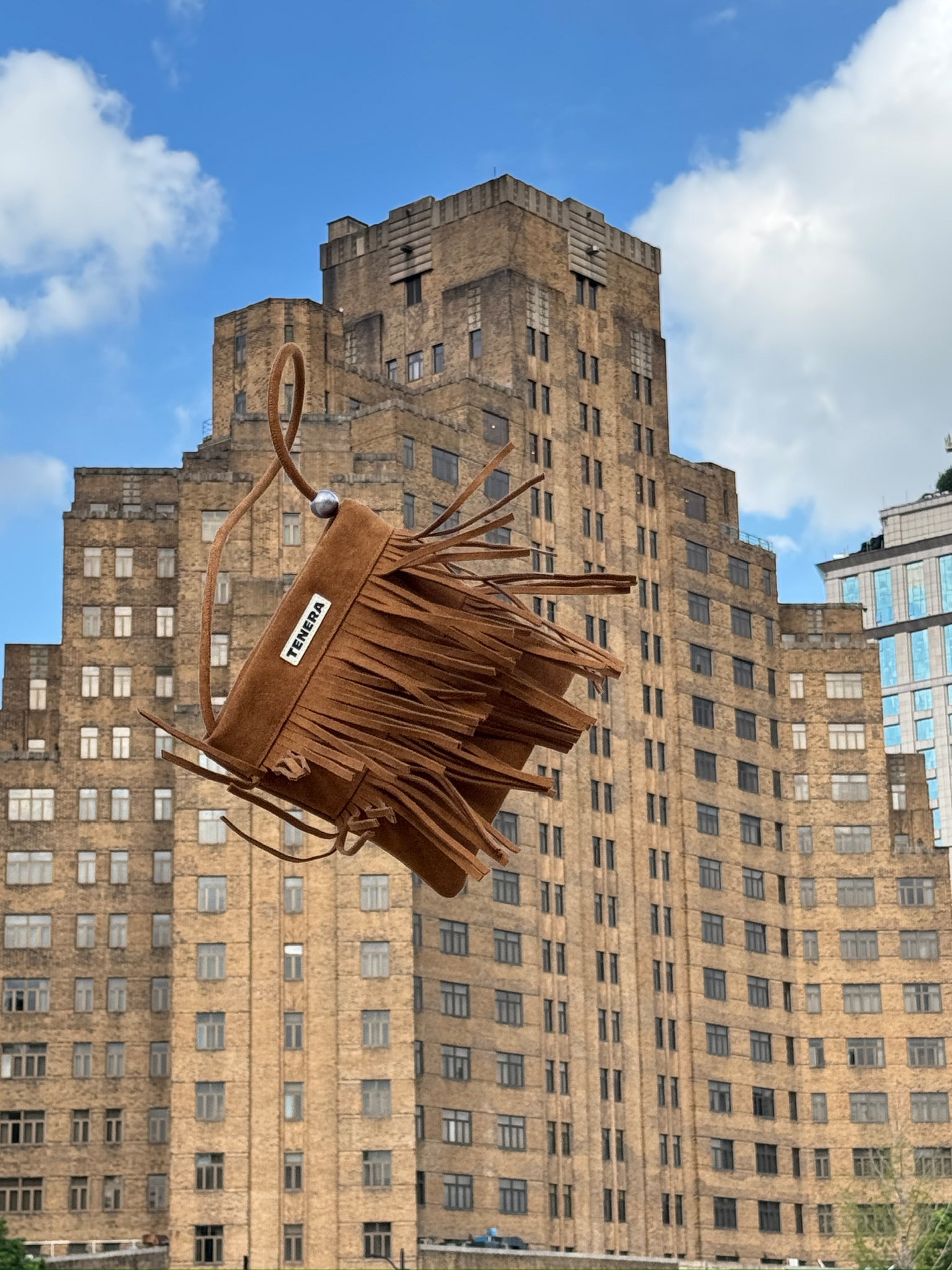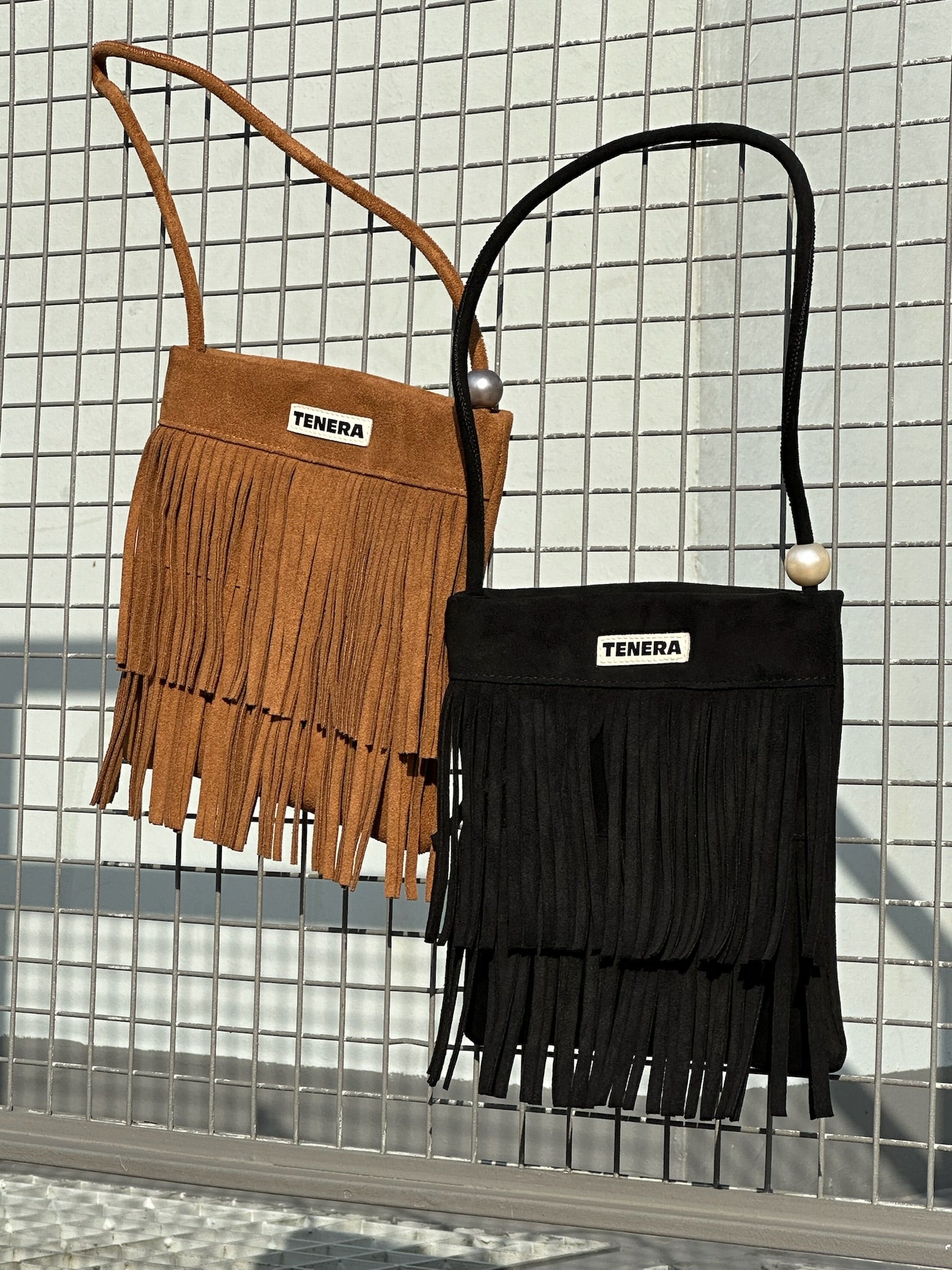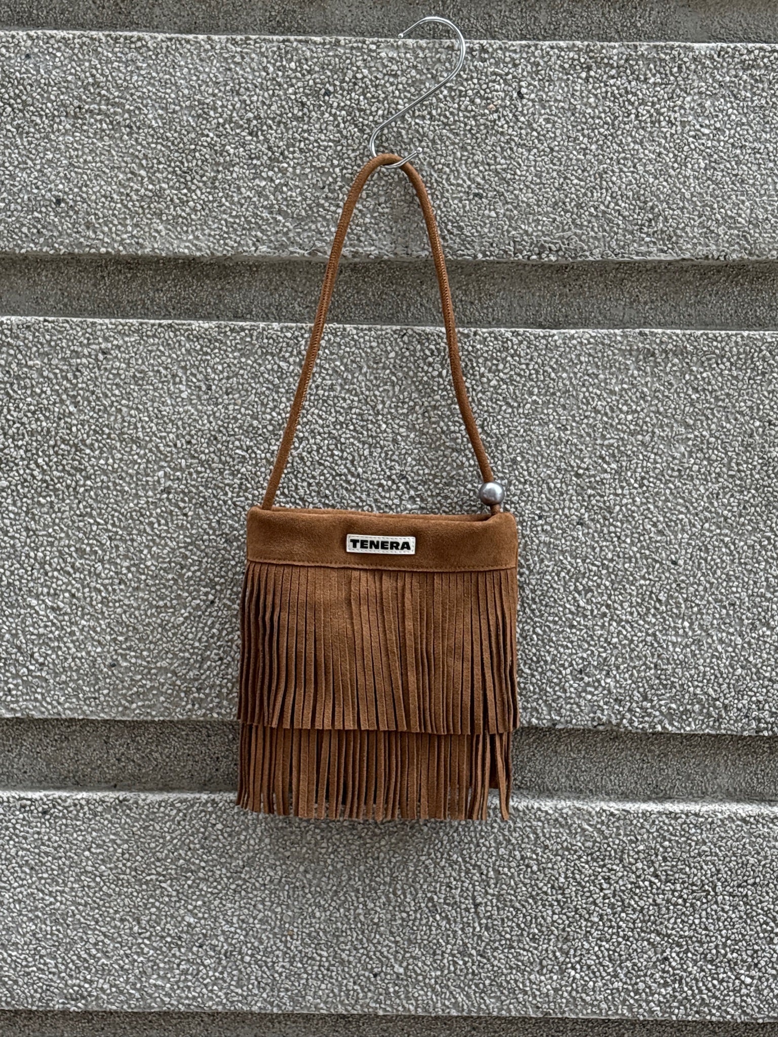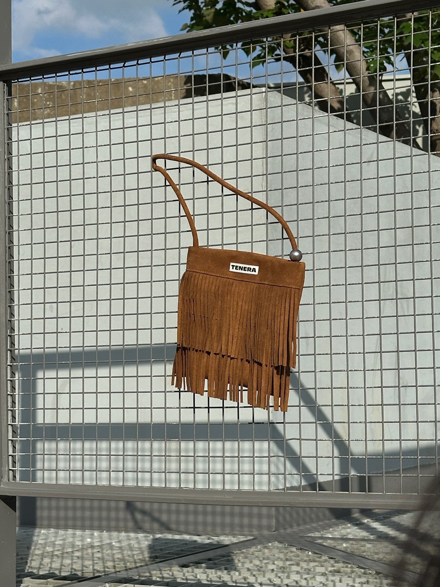 (ブラウン)フリンジ付きミニスードパールバケット - TENERA Bohoコレクション