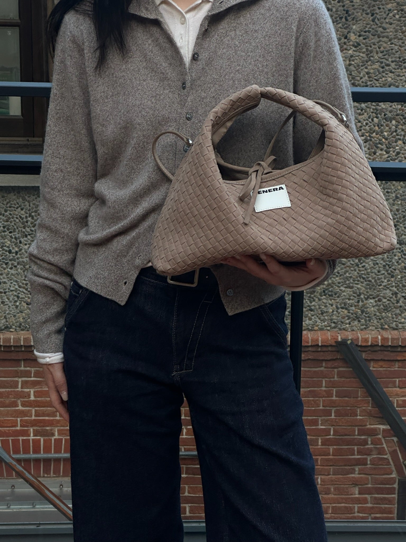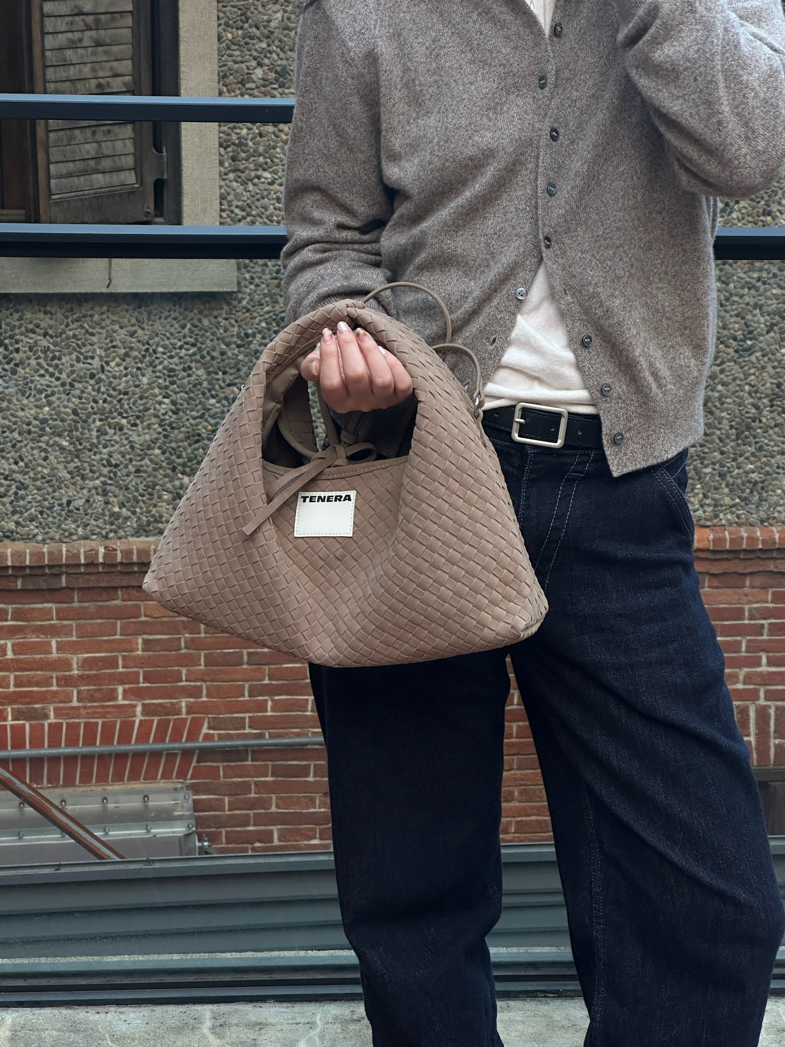(Elephant Grey)Small Hobo Bag-TENERA Handwoven Suede Collection