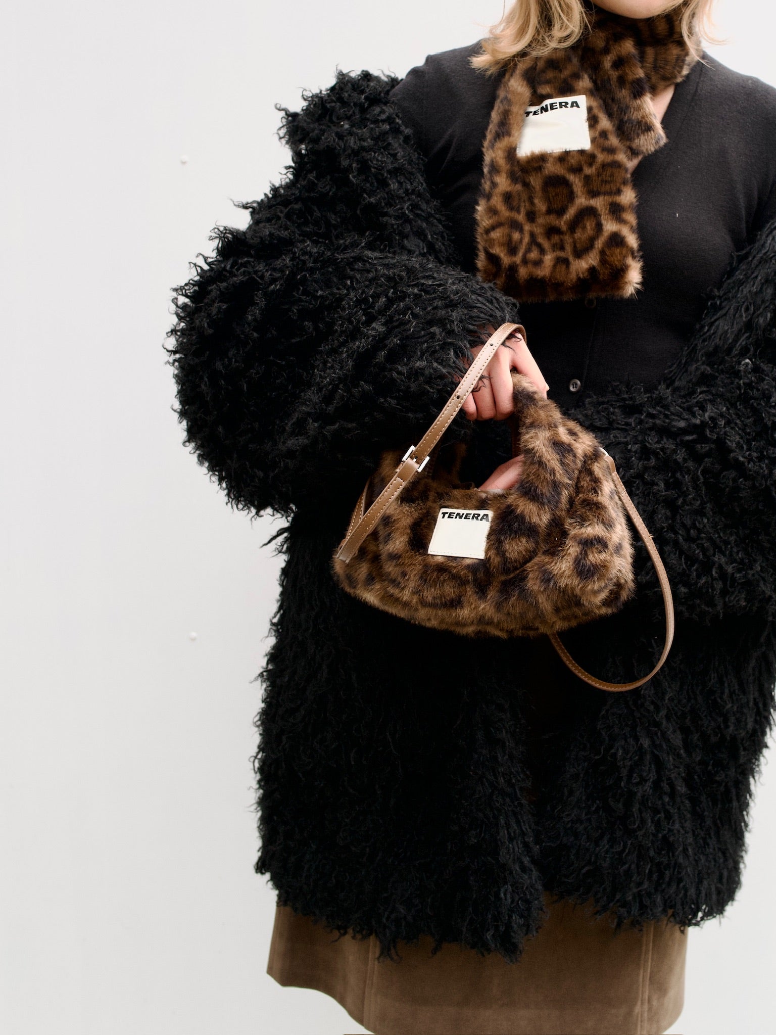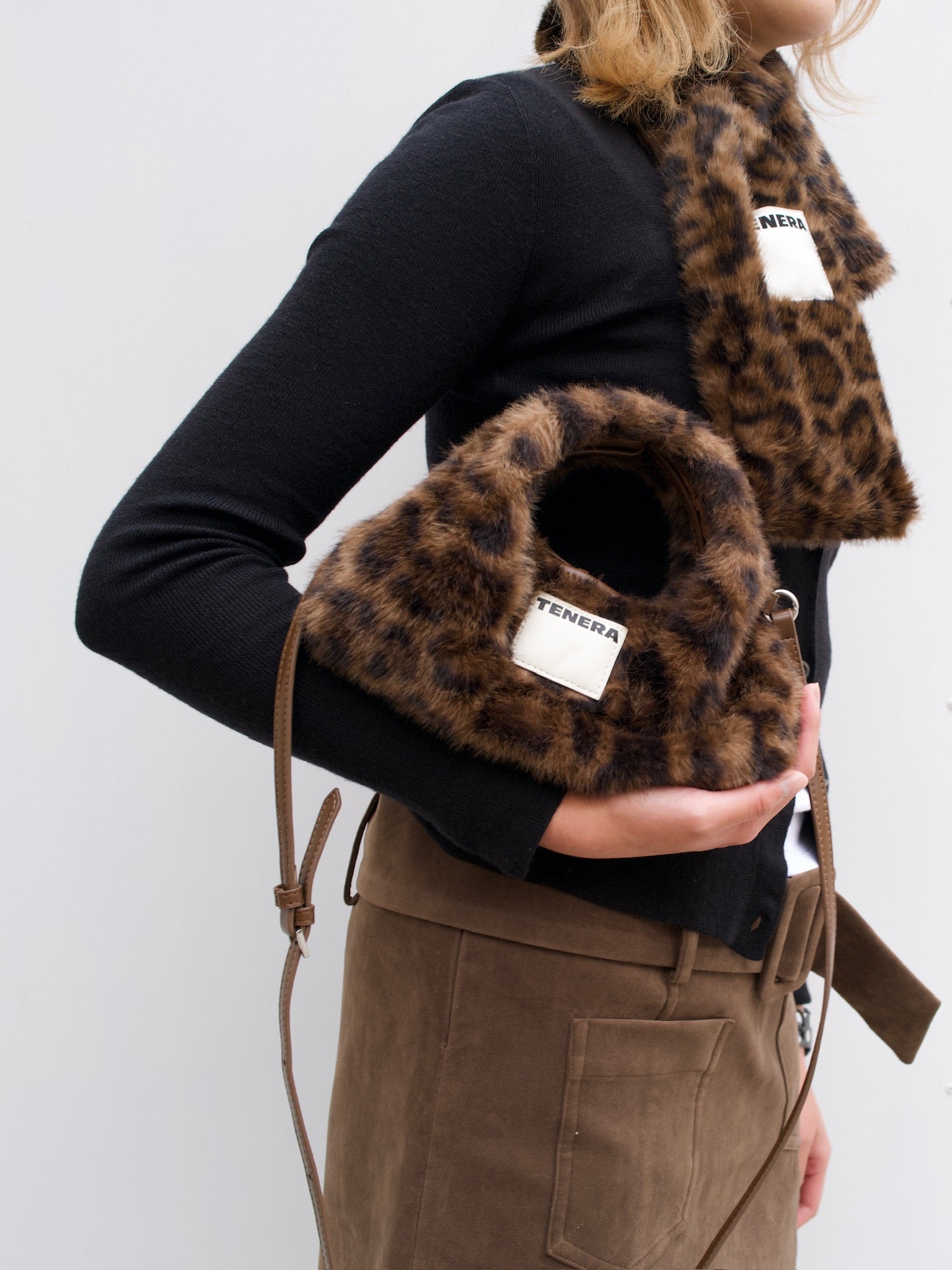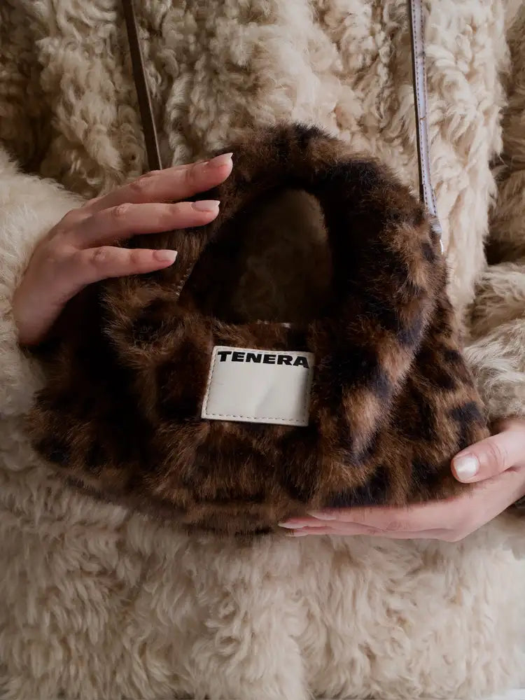 (Leopard Print)Eco Fur Mini Hobo-TENERA Faux Fur Collection