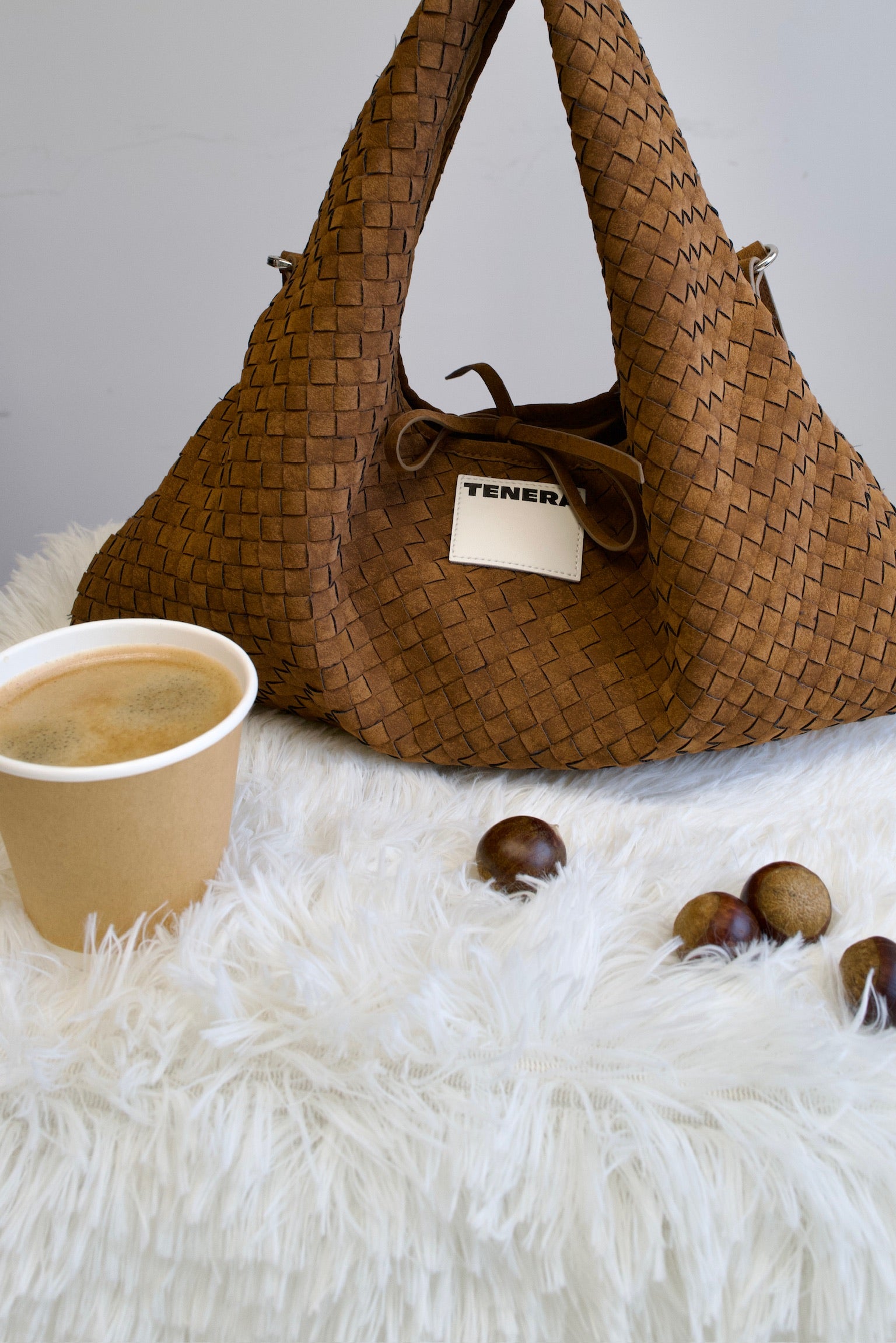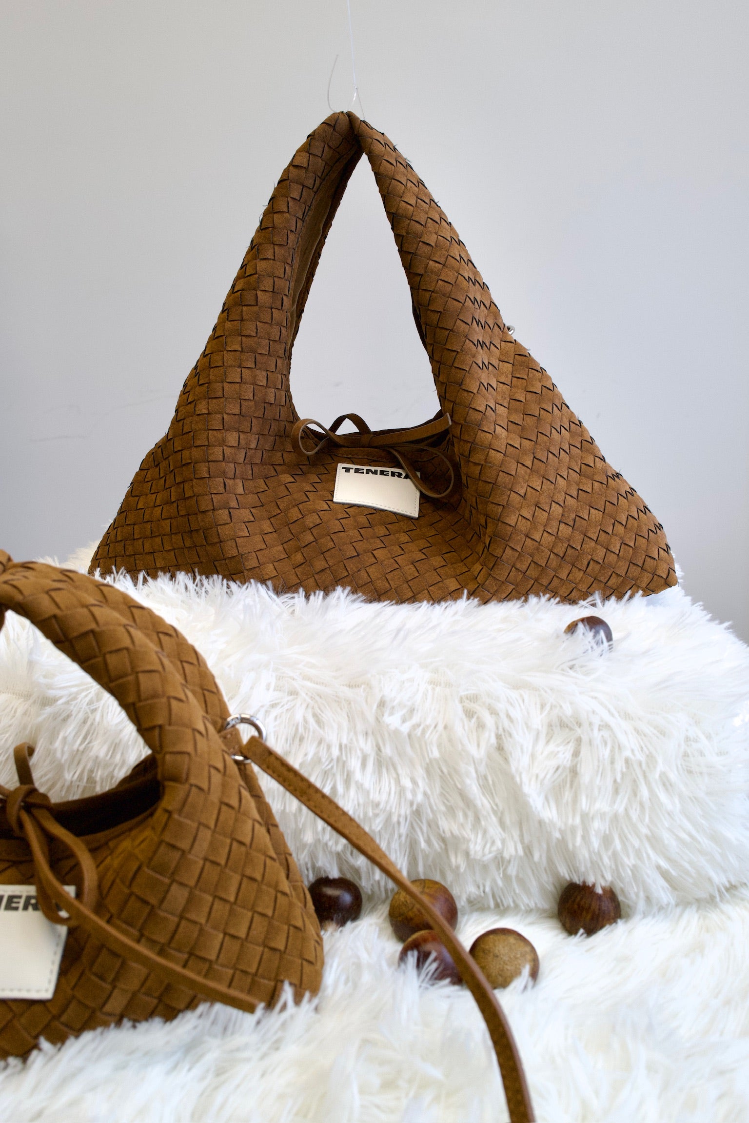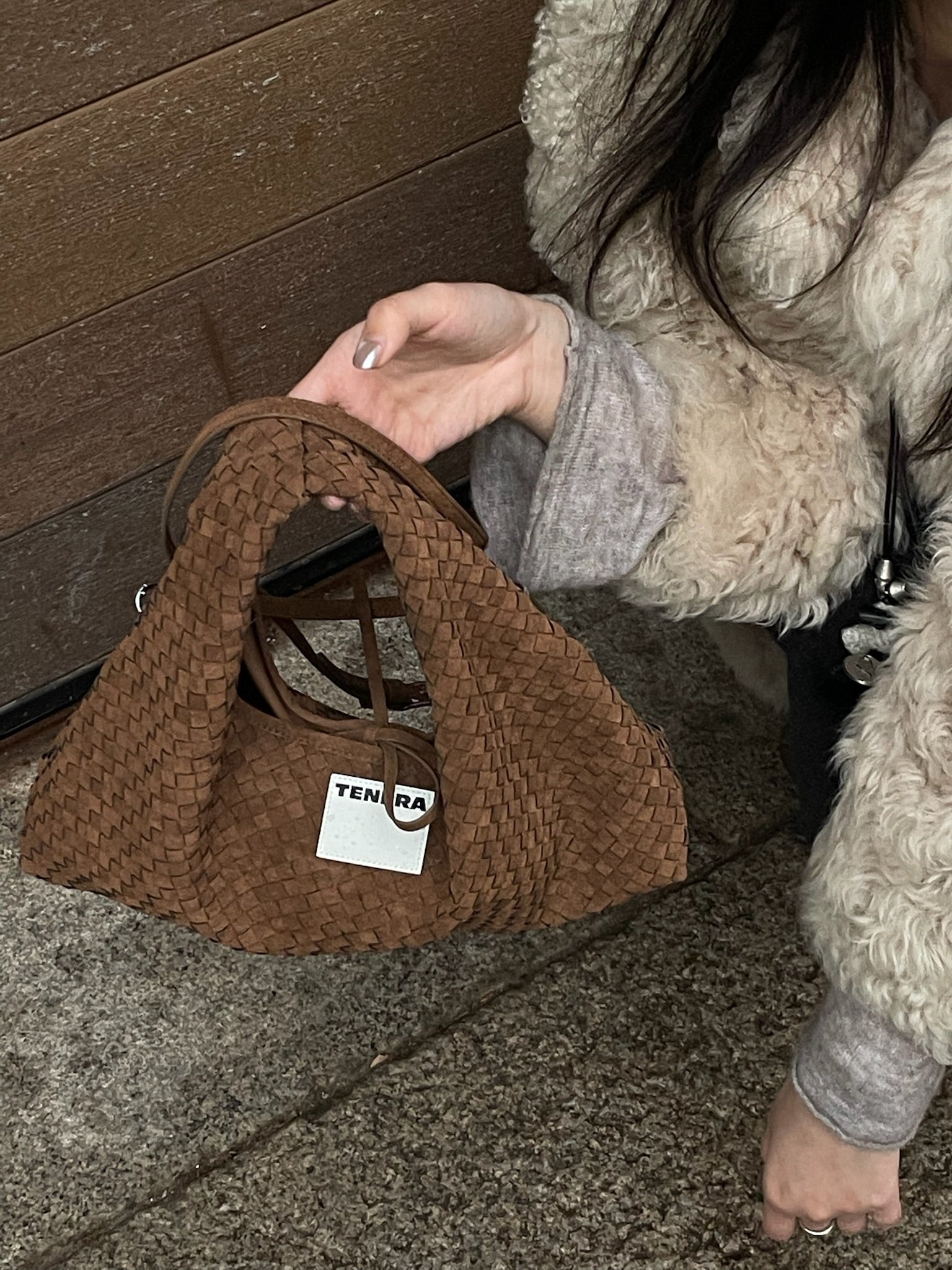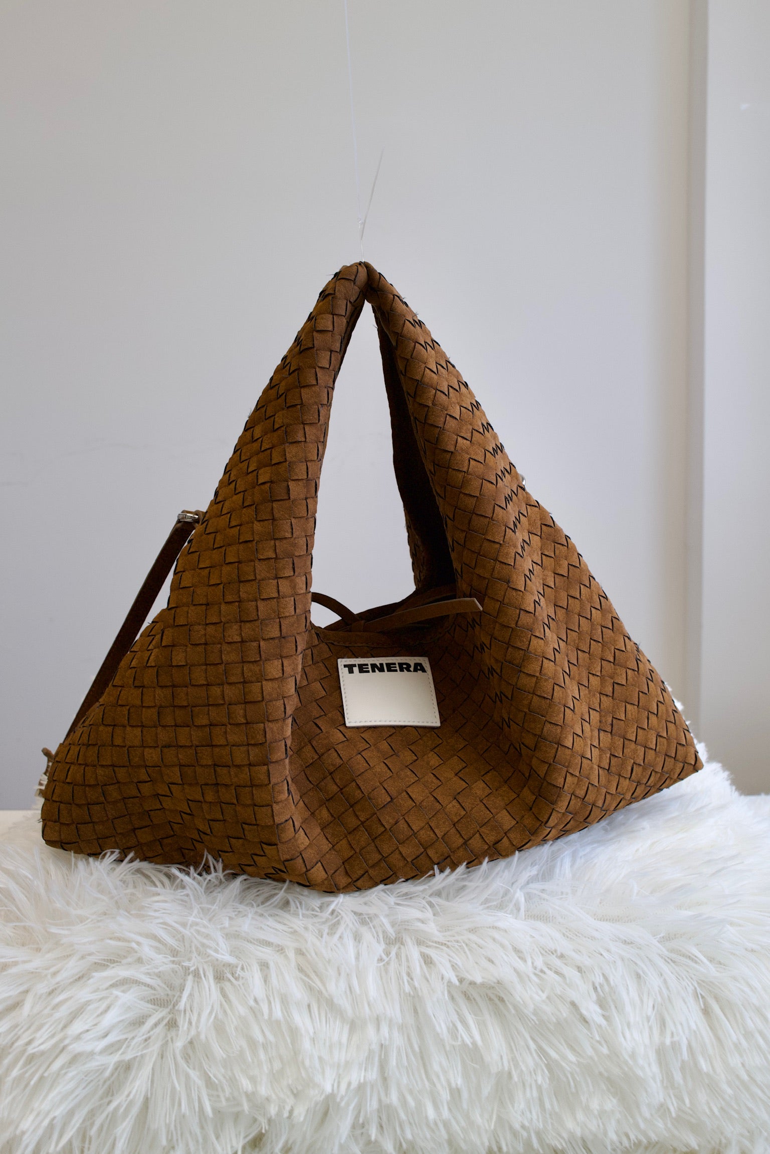 (Mocha Brown)Small Hobo Bag-TENERA Handwoven Suede Collection