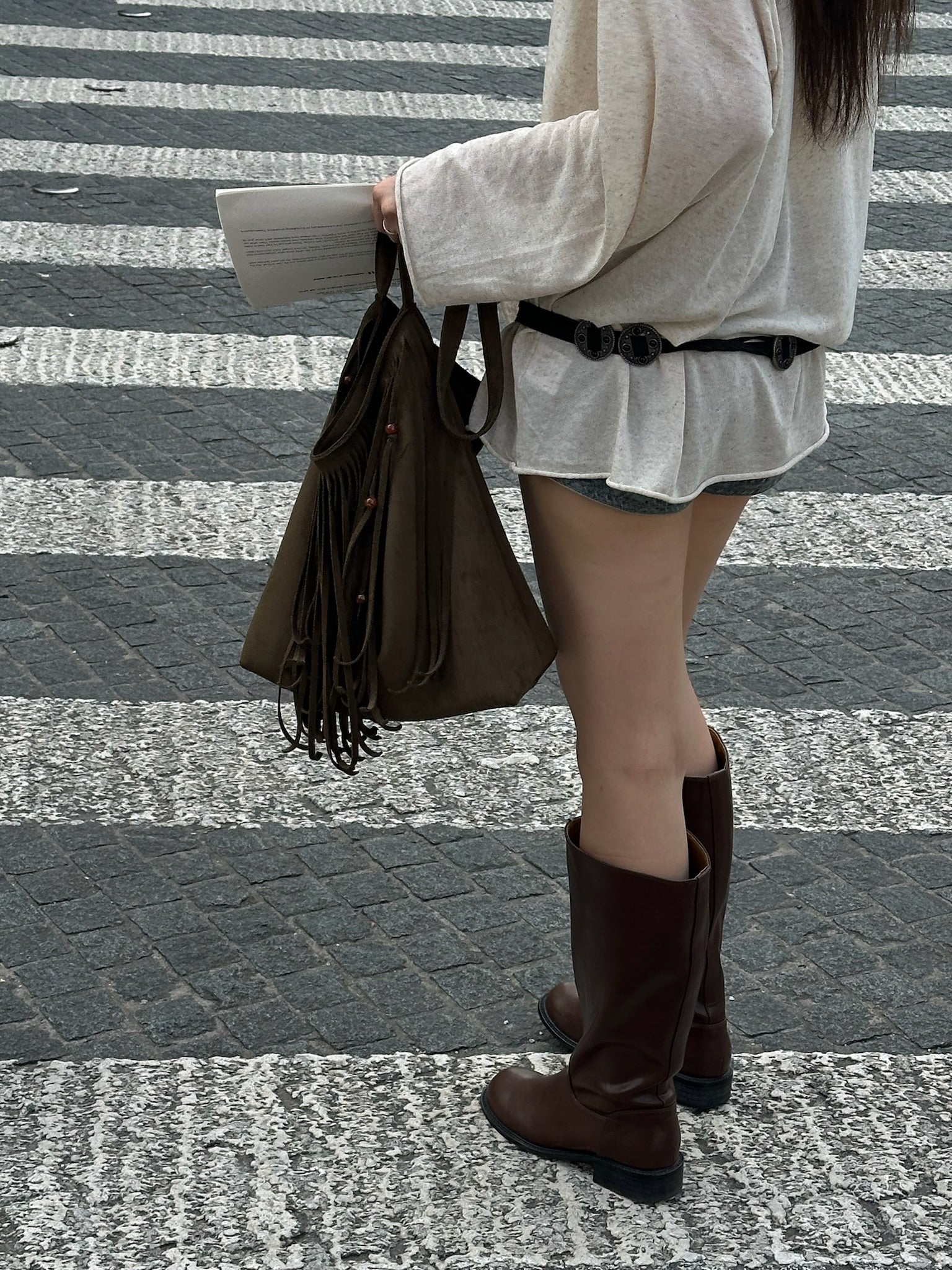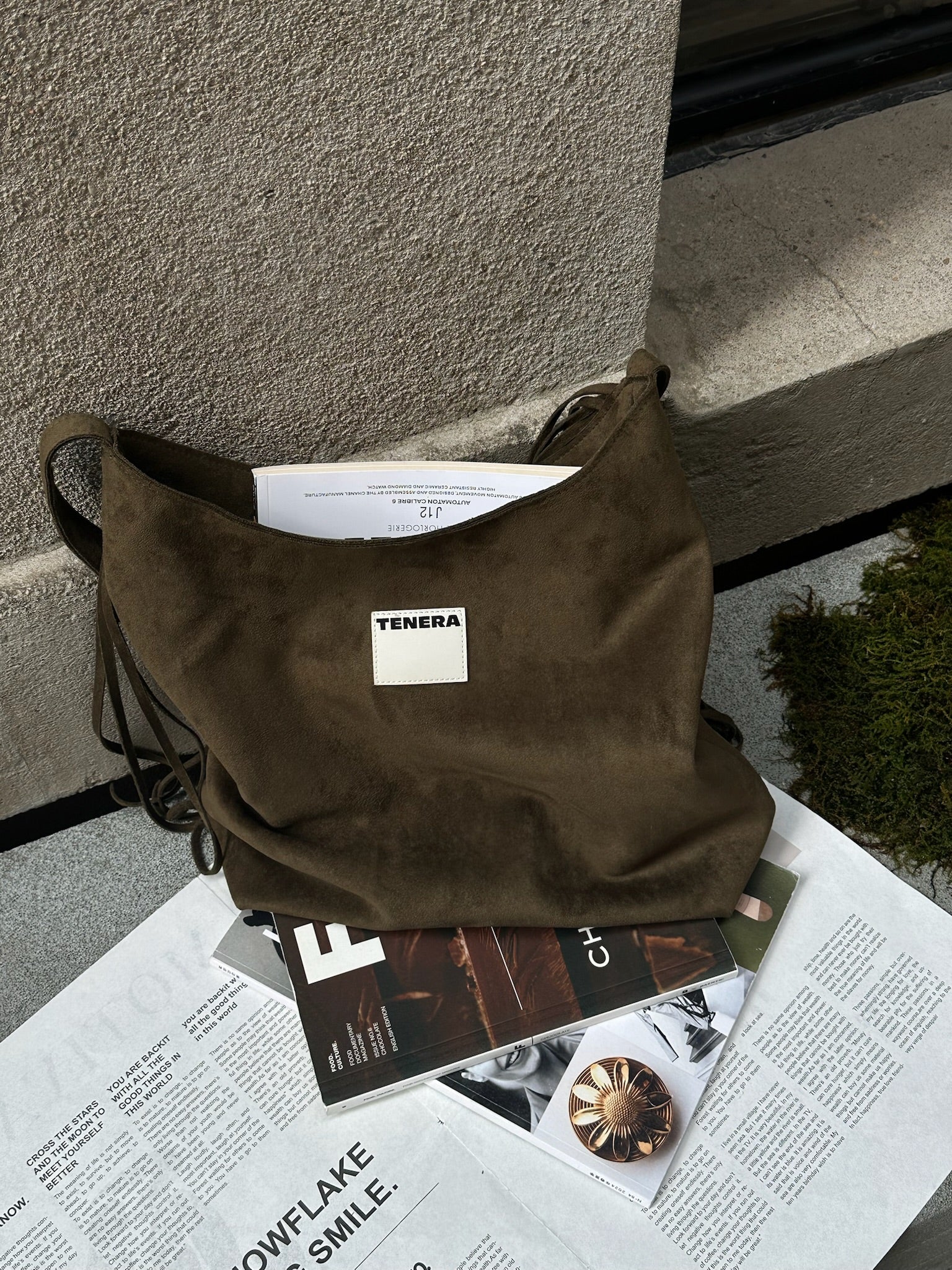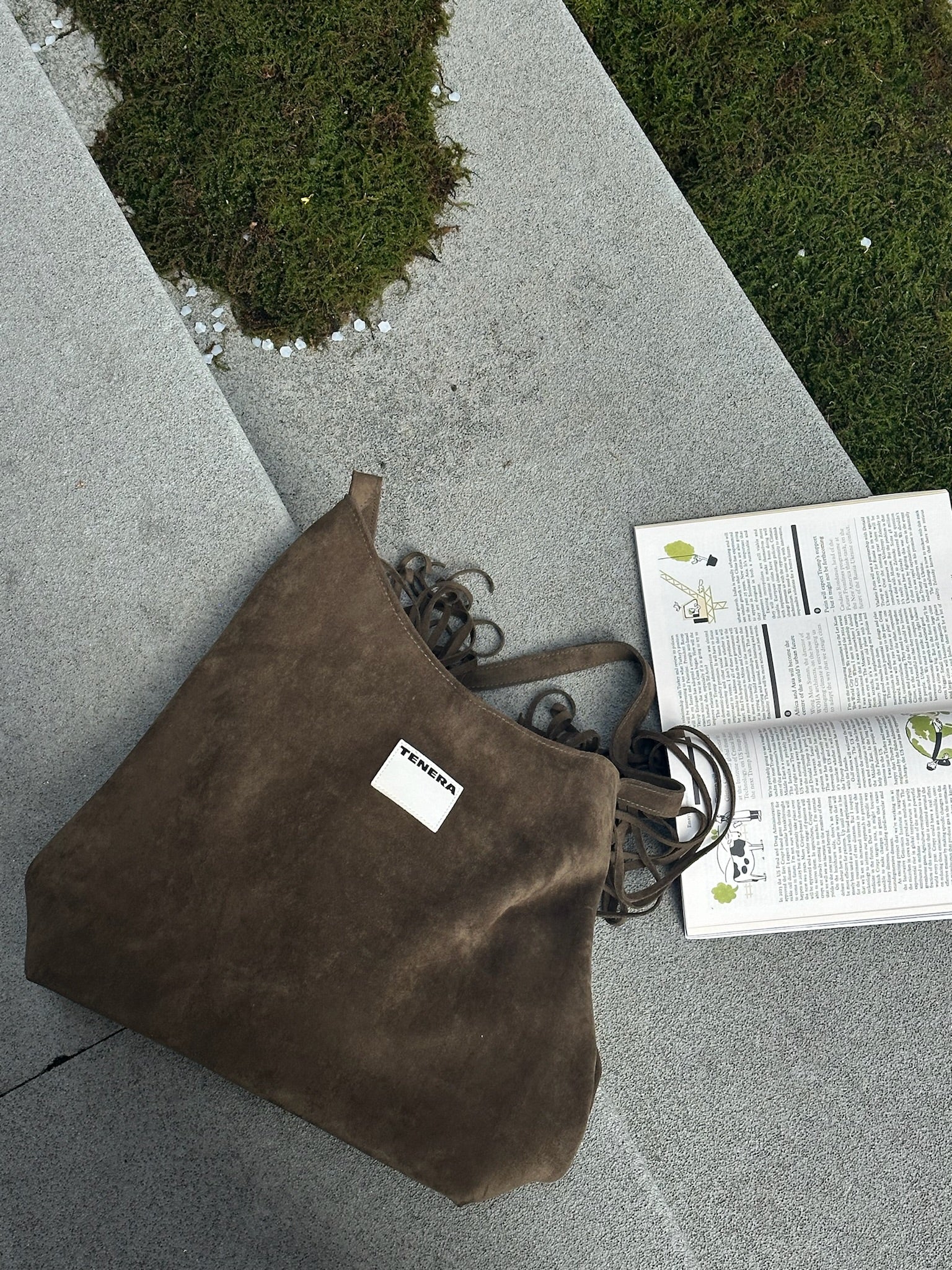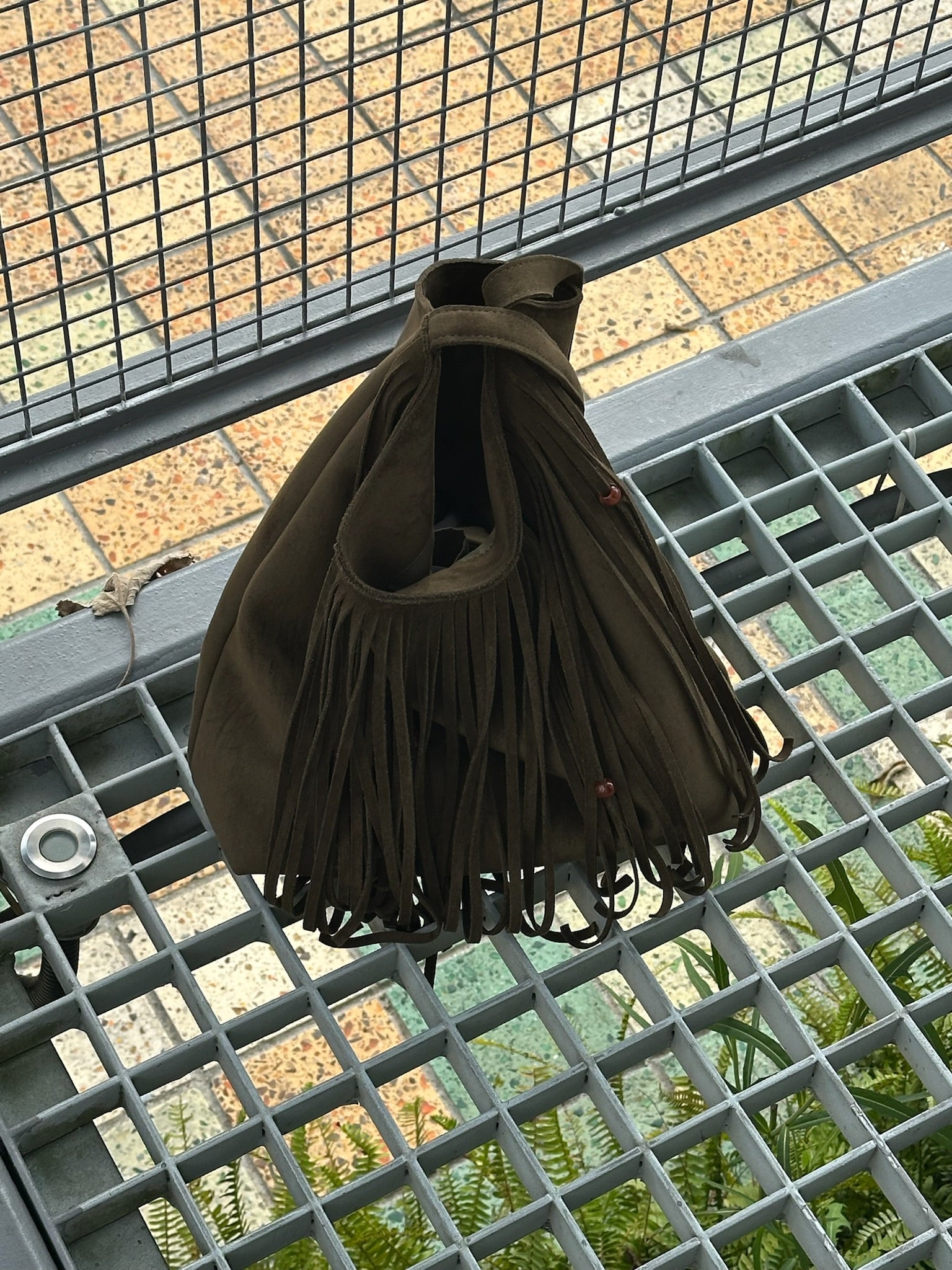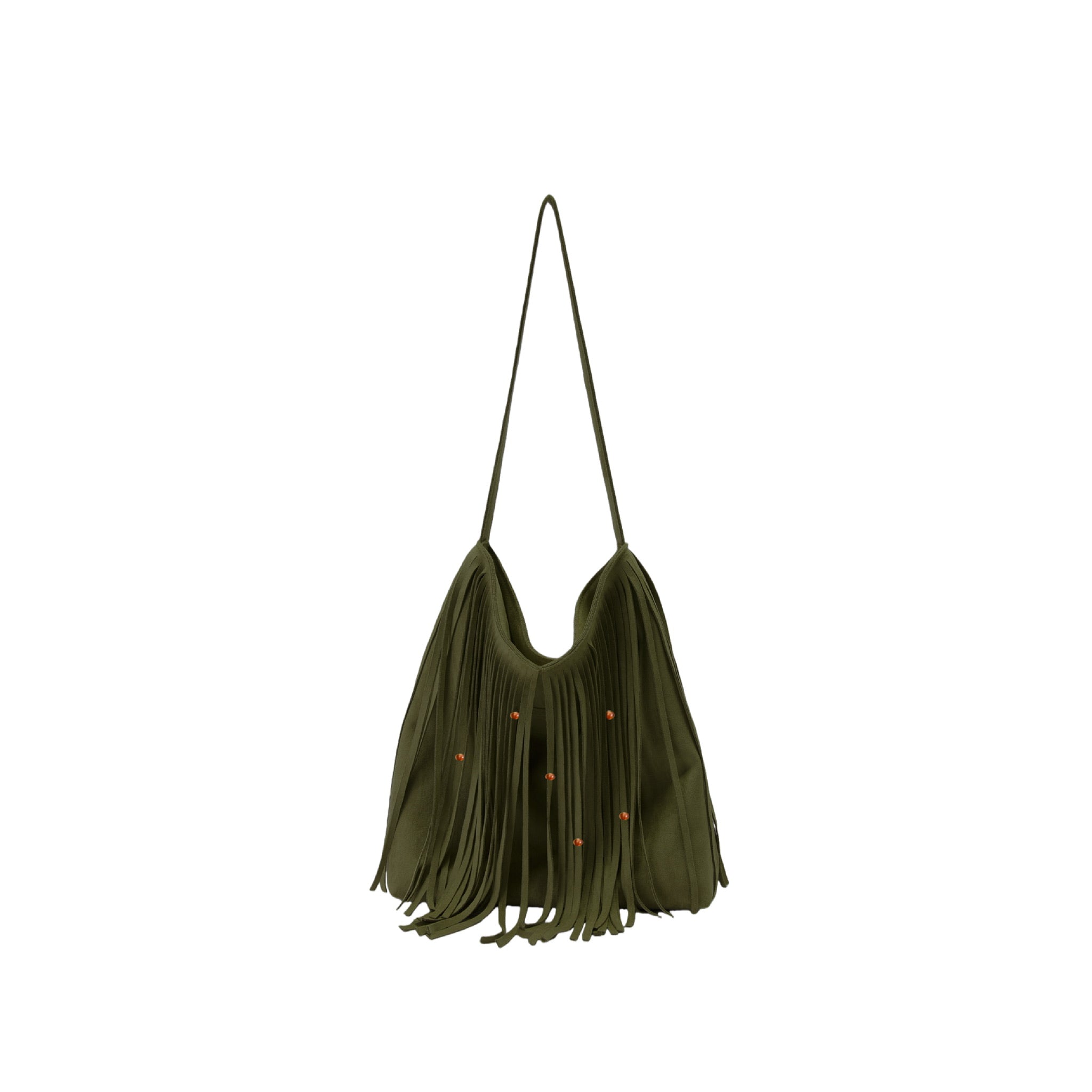 (Moss Green)Large Suede Fringe Beaded Bucket Bag-TENERA Boho Collection