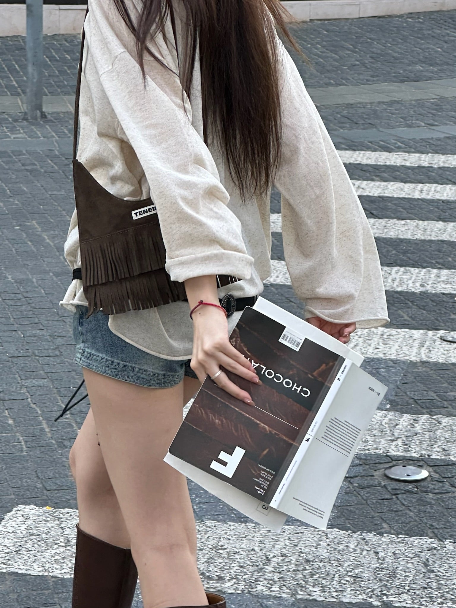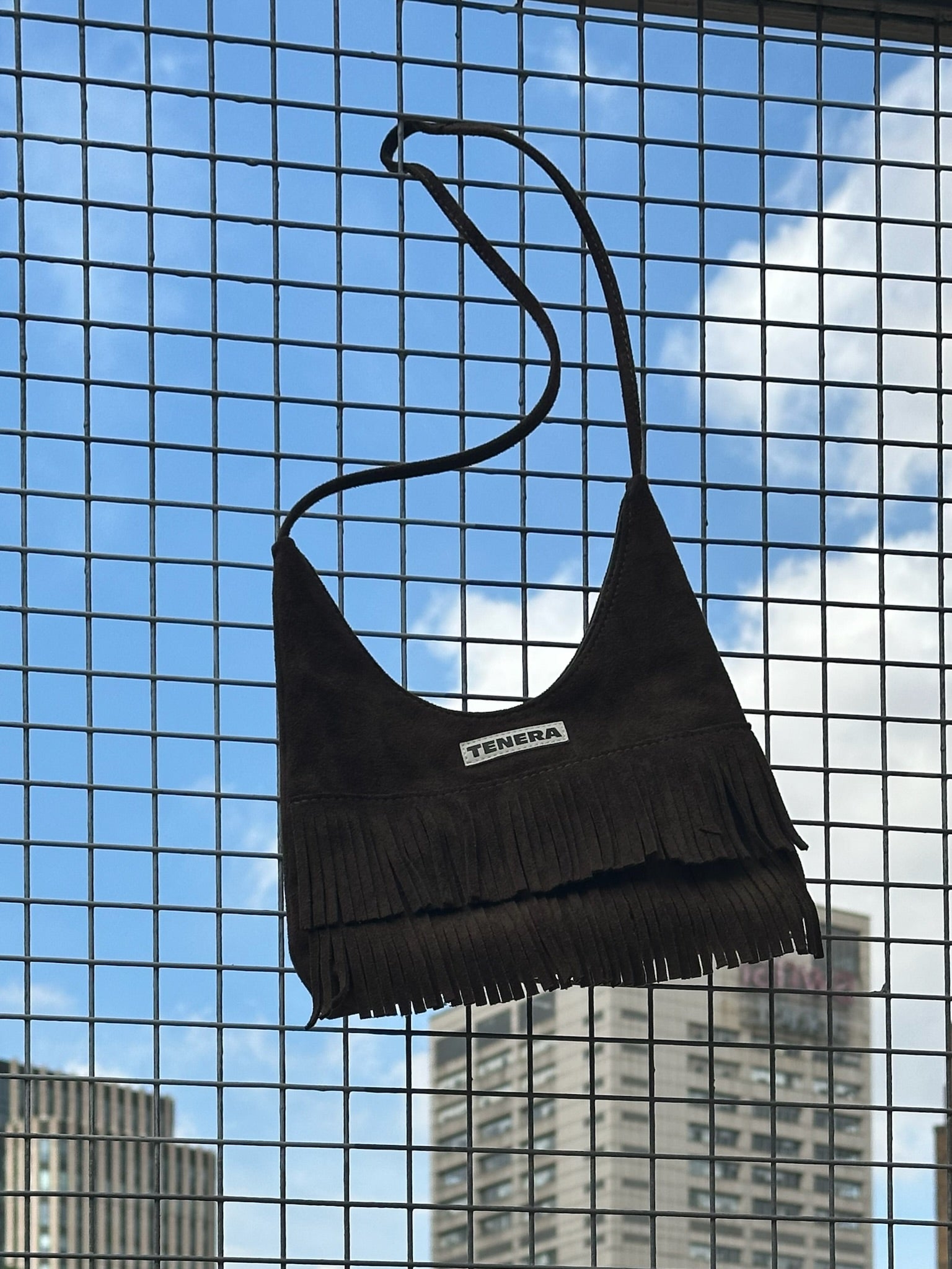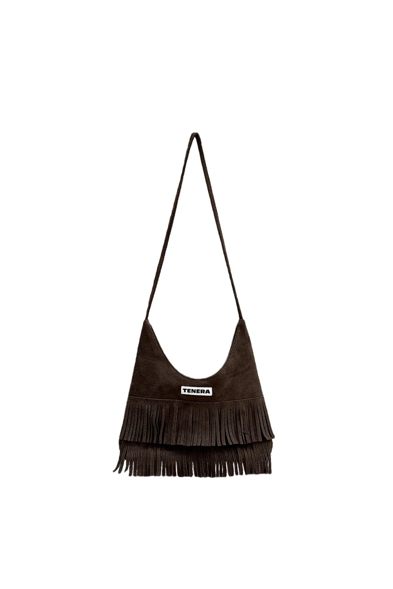 (Moss Green)Suede Fringe Baguette Bag-TENERA Boho Collection