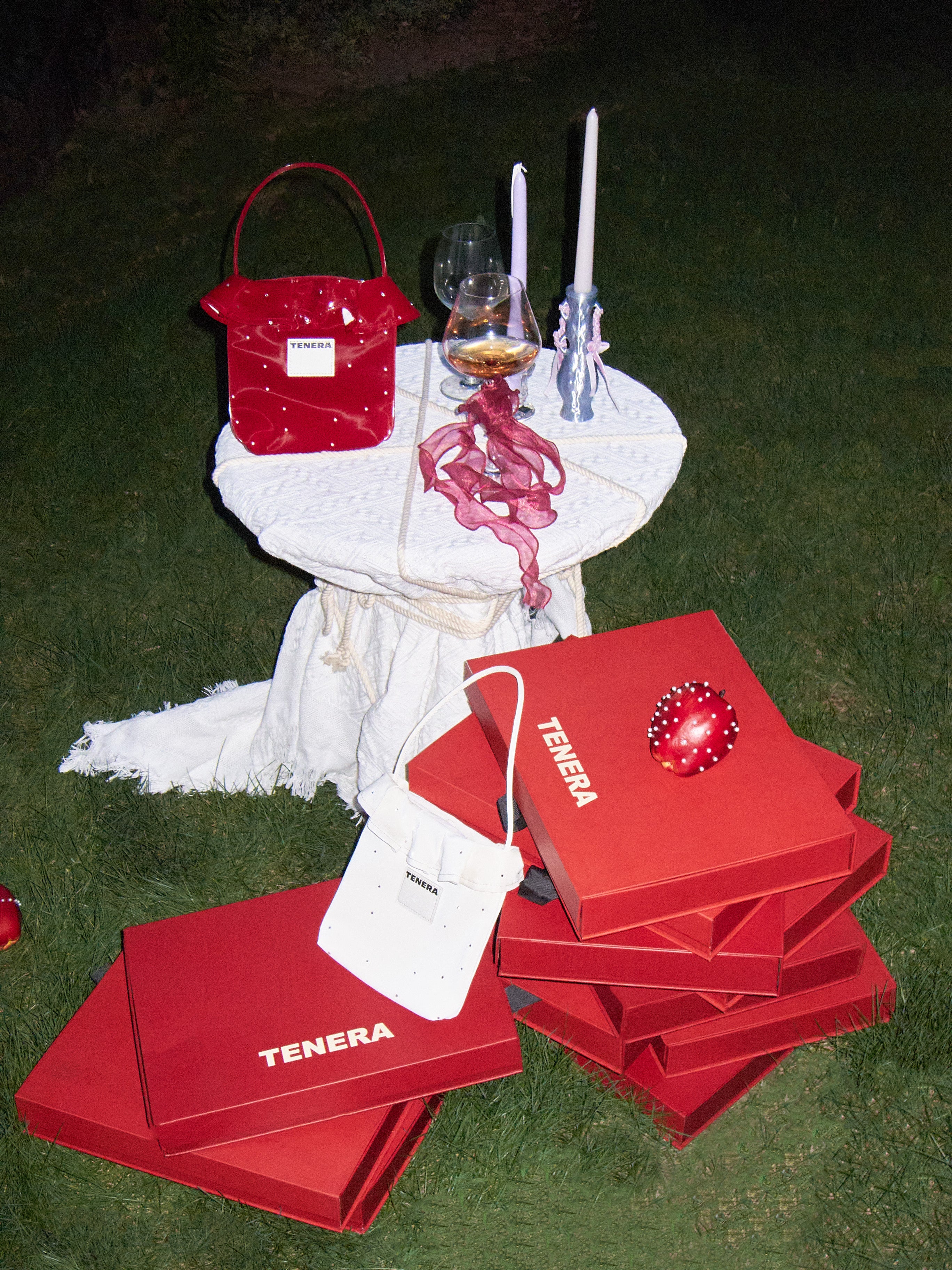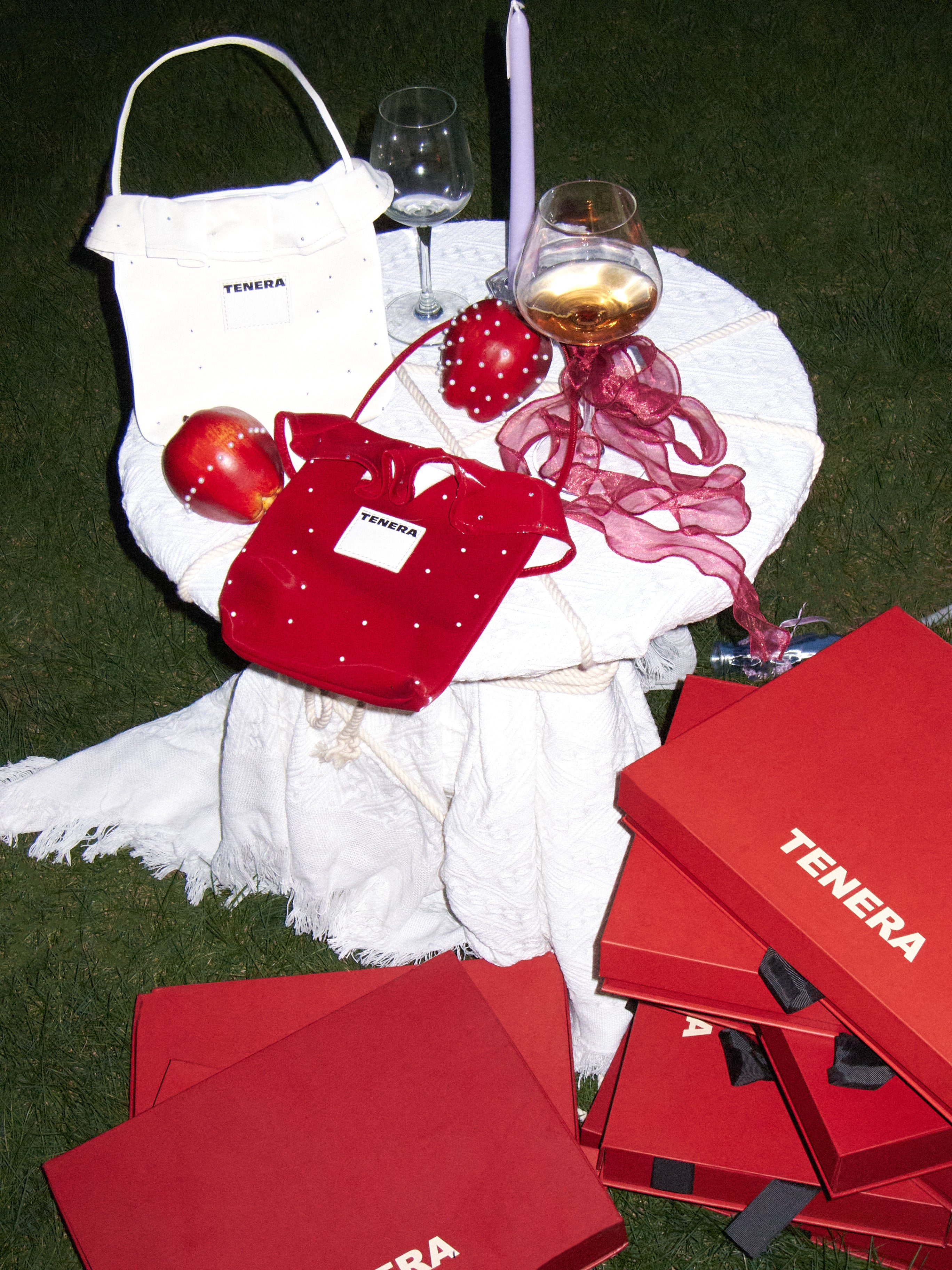 (Pearl Red)Velvet Flower Mini Bucket-TENERA Qixi Limited